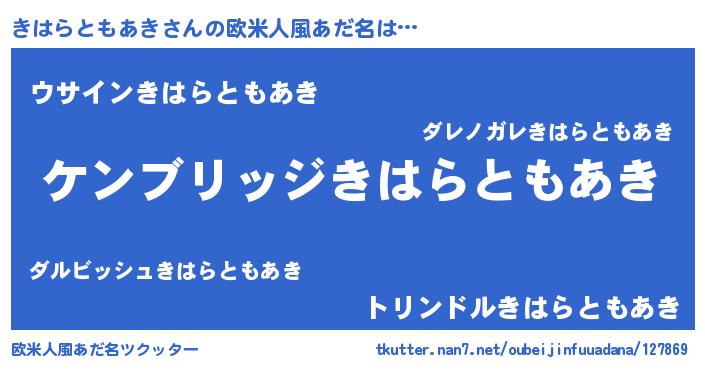 | 意味不明あだ名 | 『自称きはらともあき』 |
