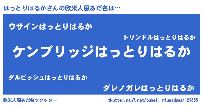 | 男性向けラノベタイトル風あだ名 | 『Re:はっとりはるかから始める異世界生活』 |