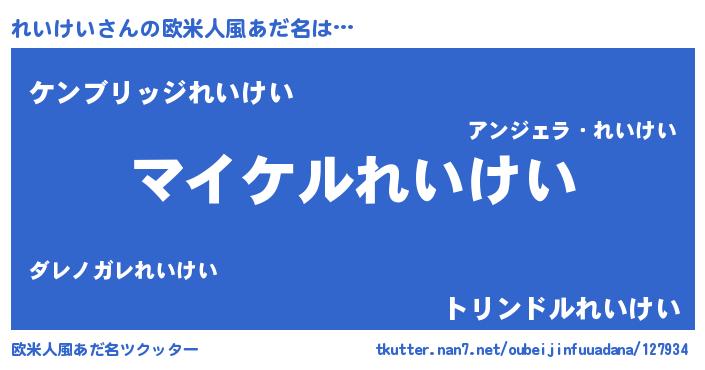 | 男性向けラノベタイトル風あだ名 | 『れいけいの憂鬱』『魔弾の王とれいけい』 |