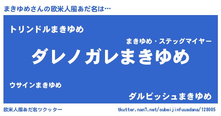| ヘコむあだ名 | 『まきゆめ(苦笑)』『まきを』 |