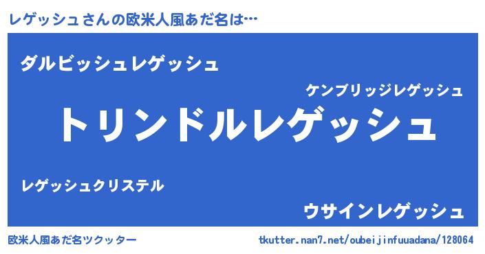 | 男性向けラノベタイトル風あだ名 | 『レゲッシュスレイヤー』 |