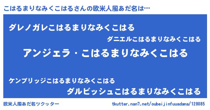 | 男性向けラノベタイトル風あだ名 | 『はたらくこはるまりなみくこはるさま!』 |