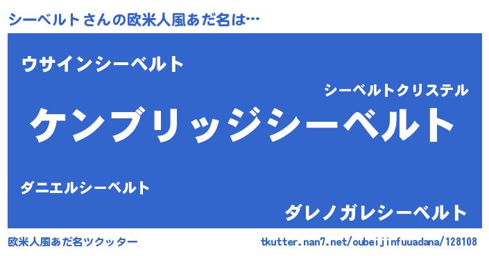 | 男性向けラノベタイトル風あだ名 | 『Re:シーベルトから始める異世界生活』 |