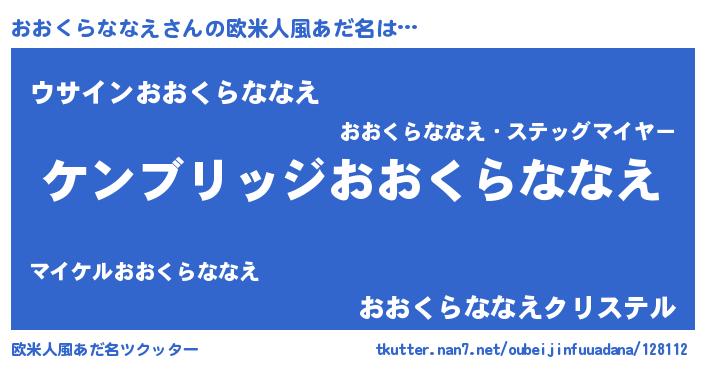 | 伝説のあだ名 | 『孤高の僧侶おおくらななえ』 |