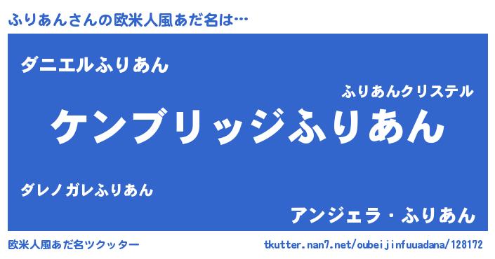 | 女子向けラノベタイトル風あだ名 | 『闇のふりあん』『ふりあんの雑貨屋さん』 |