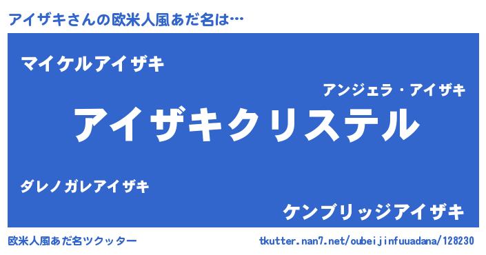 | 意味不明あだ名 | 『アイザキフォーエバー』『自称アイザキ』 |