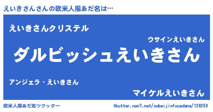 | 意味不明あだ名 | 『永久保存えいきさん』『自称えいきさん』 |