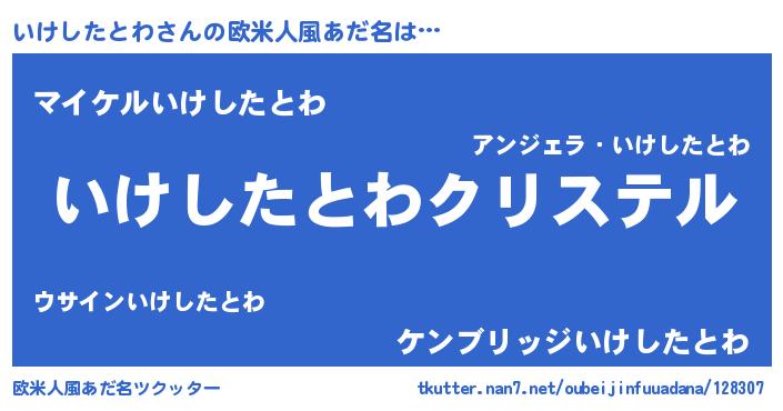 | 意味不明あだ名 | 『いけしたとわフォーエバー』 |
