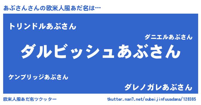 | ファンタジー風あだ名 | 『アブディッシュ』『ユリアブヴァット』 |