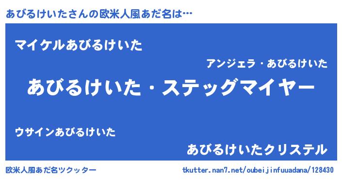 | 男性向けラノベタイトル風あだ名 | 『うちのあびるけいたが世界を掌握している!』 |