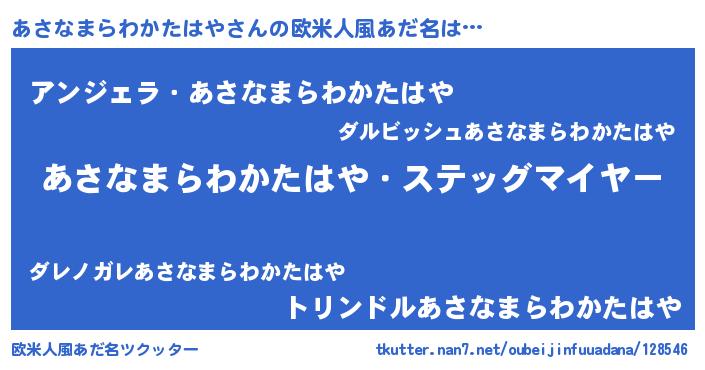 | ヘコむあだ名 | 『あさなまらわかたはや(苦笑)』『あさもー』 |