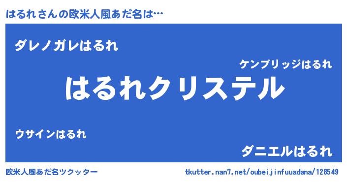 | 男性向けラノベタイトル風あだ名 | 『やはりはるれの青春ラブコメはまちがっている 』 |