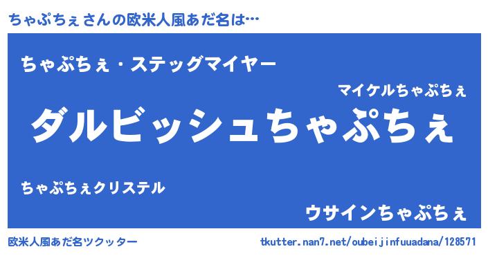 | 女子向けラノベタイトル風あだ名 | 『異世界で失敗しない100のちゃぷちぇ』 |