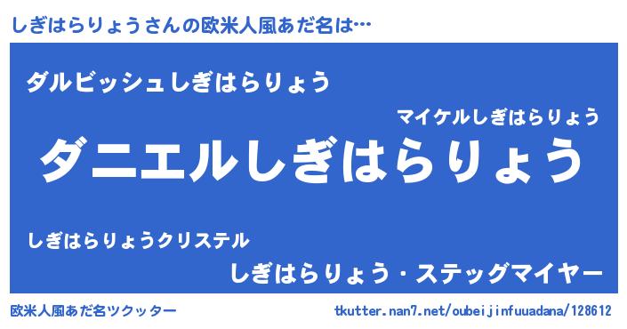 | 男性向けラノベタイトル風あだ名 | 『ノーゲーム・ノーシギハラリョウ』 |