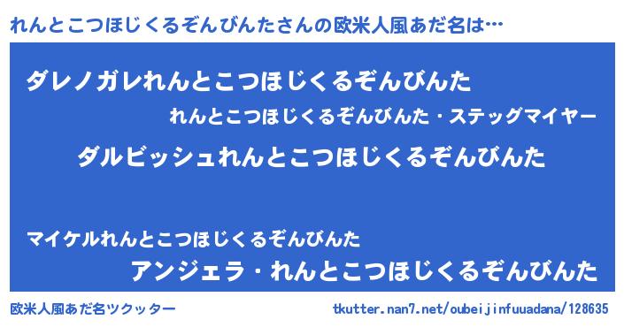 | 男性向けラノベタイトル風あだ名 | 『れんとこつほじくるぞんびんたという概念が存在しない退屈な世界 』 |