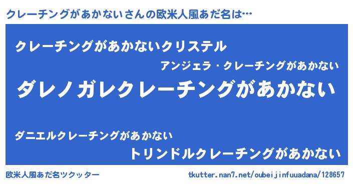 | 意味不明あだ名 | 『住所不定無職クレーチングがあかない(3歳)』 |