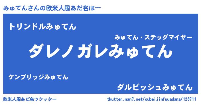 | 男性向けラノベタイトル風あだ名 | 『この素晴らしい世界にみゅてんを!』 |