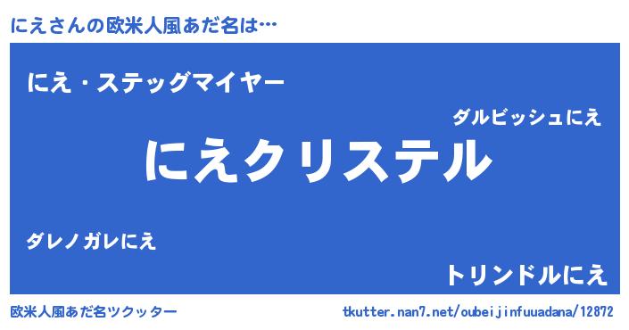 | ヒーロー風カッコイイあだ名 | 『ウルトラにえマン』『ネオニエ』 |