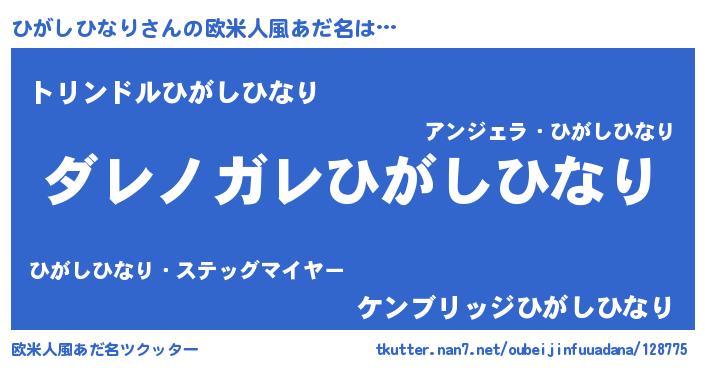 | 男性向けラノベタイトル風あだ名 | 『魔弾の王とひがしひなり』 |
