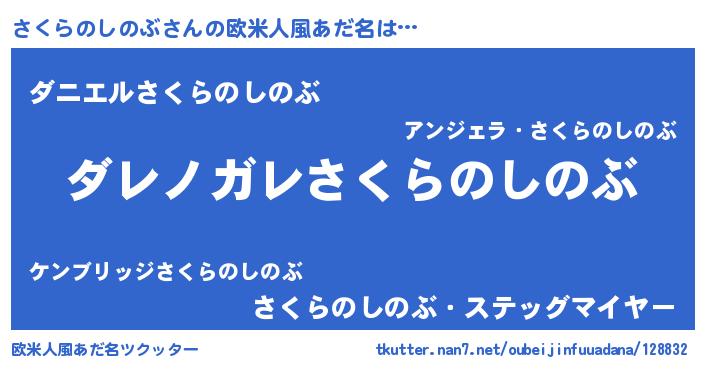 | 男性向けラノベタイトル風あだ名 | 『この素晴らしい世界にさくらのしのぶを!』 |