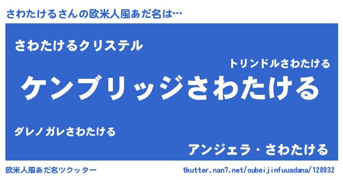 | 男性向けラノベタイトル風あだ名 | 『Re:さわたけるから始める異世界生活』 |