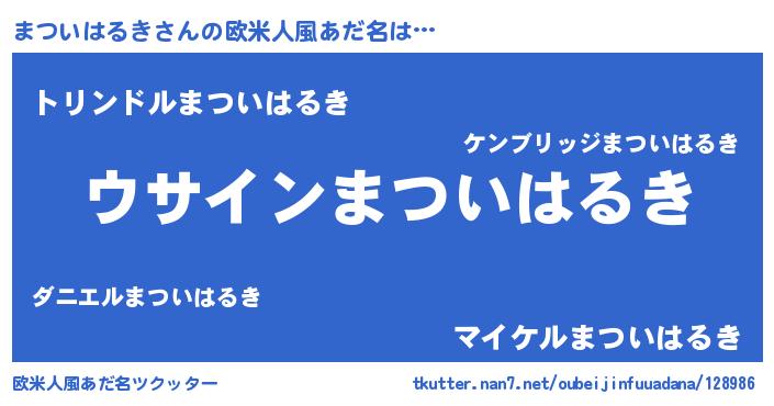 | 女子向けラノベタイトル風あだ名 | 『まついはるきの卵を拾いまして』 |
