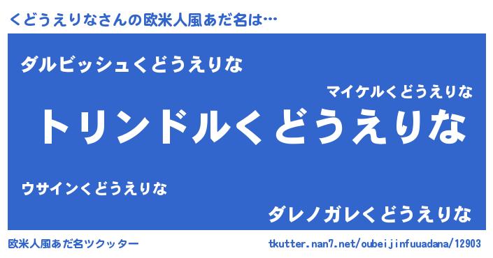 | 男性向けラノベタイトル風あだ名 | 『クドウエリナスレイヤー』 |