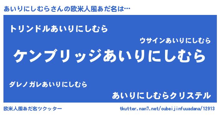 | 意味不明あだ名 | 『自称あいりにしむら』 |