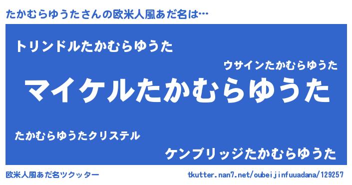 | 男性向けラノベタイトル風あだ名 | 『タカムラユウタアートオンライン』 |