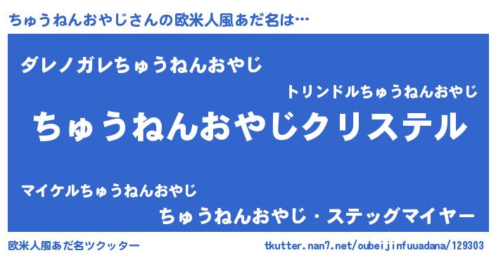 | 意味不明あだ名 | 『ちゅうねんおやじフォーエバー』 |