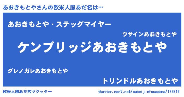 | 意味不明あだ名 | 『自称あおきもとや』 |