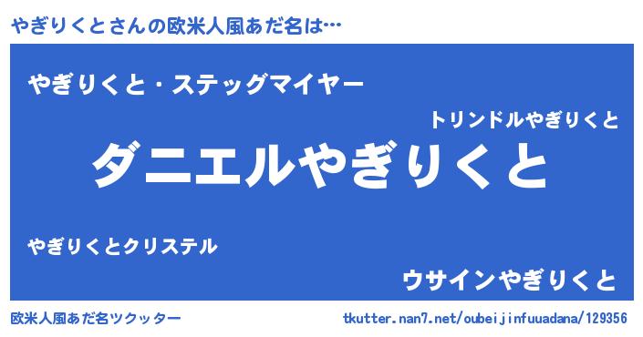 | 男性向けラノベタイトル風あだ名 | 『おまえをオタクにしてやるから、俺をやぎりくとにしてくれ! 』 |
