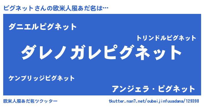 | 男性向けラノベタイトル風あだ名 | 『魔弾の王とピグネット』 |