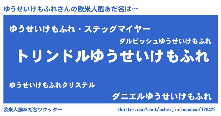 | 男性向けラノベタイトル風あだ名 | 『転生したらゆうせいけもふれだった件』 |