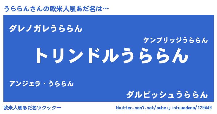 | ヘコむあだ名 | 『うららん(遠い目)』『うらふぇ~』 |