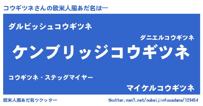 | 女子向けラノベタイトル風あだ名 | 『闇のコウギツネ』『コウギツネ恋絵巻』 |