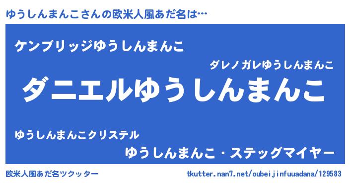 | 男性向けラノベタイトル風あだ名 | 『おまえをオタクにしてやるから、俺をゆうしんまんこにしてくれ! 』 |