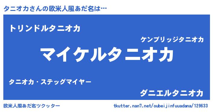 | ヒーロー風カッコイイあだ名 | 『スーパータニオカ』『愛の使者タニオカ』 |