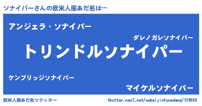 | 男性向けラノベタイトル風あだ名 | 『ソナイパースレイヤー』 |