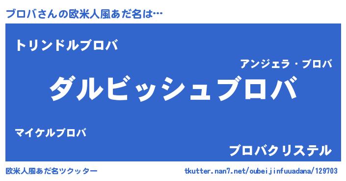 | 意味不明あだ名 | 『永久保存ブロバ』『めかぶ科ブロバ属』 |