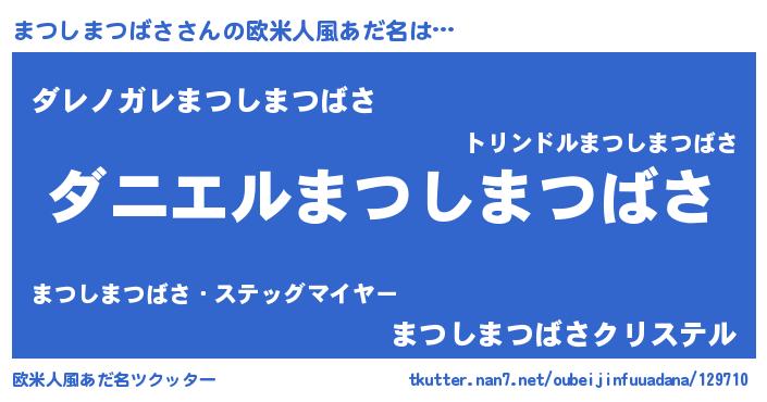 | 男性向けラノベタイトル風あだ名 | 『おまえをオタクにしてやるから、俺をまつしまつばさにしてくれ! 』 |