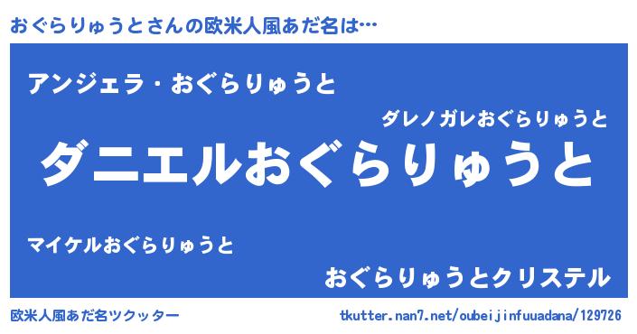 | 男性向けラノベタイトル風あだ名 | 『おまえをオタクにしてやるから、俺をおぐらりゅうとにしてくれ! 』 |