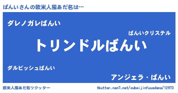 | 男性向けラノベタイトル風あだ名 | 『ばんい~年齢イコール彼女いない歴の魔法使い~』 |
