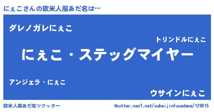 | 男性向けラノベタイトル風あだ名 | 『緋弾のニェコ』『魔弾の王とにぇこ』 |