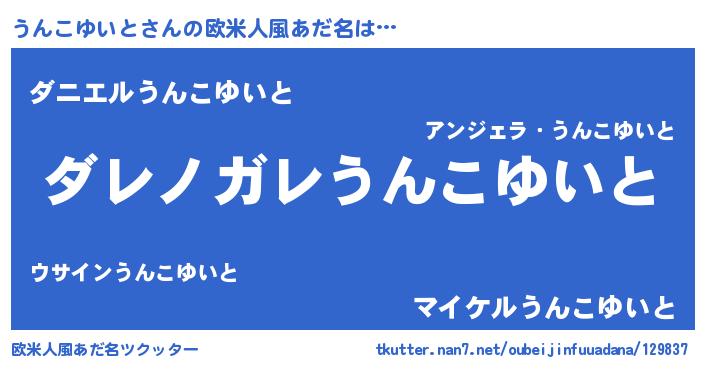 | 男性向けラノベタイトル風あだ名 | 『魔弾の王とうんこゆいと』 |