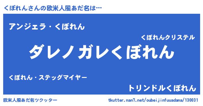| 意味不明あだ名 | 『住所不定無職くぼれん(6歳)』 |