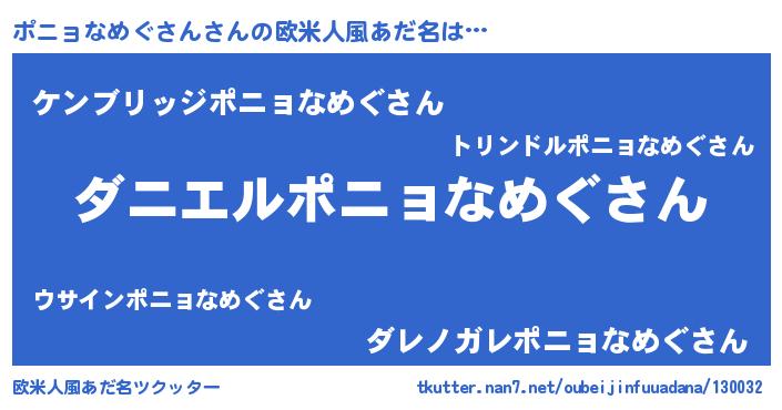 | ヘコむあだ名 | 『ポニお』『ポニョなめぐさん(苦笑)』 |