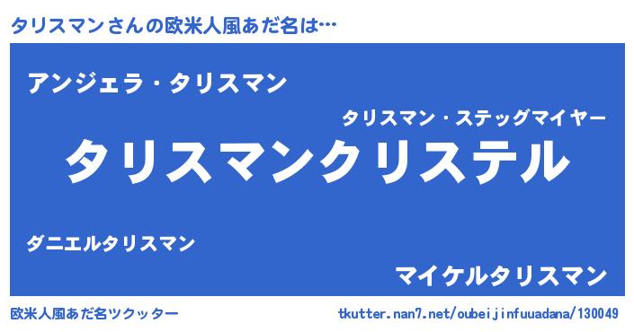 | 男性向けラノベタイトル風あだ名 | 『やはりタリスマンの青春ラブコメはまちがっている 』 |