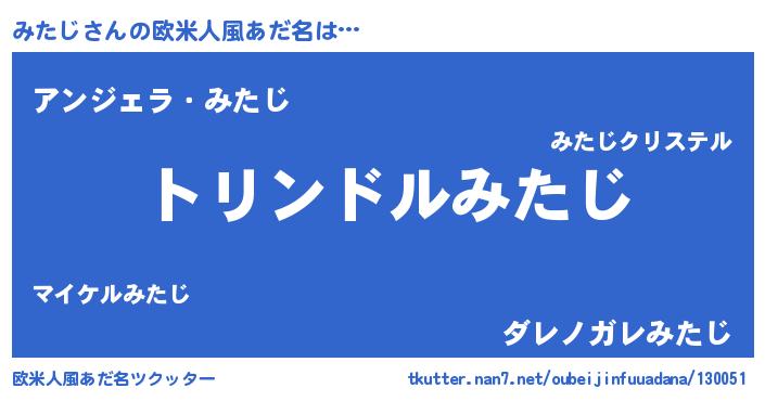 | 男性向けラノベタイトル風あだ名 | 『ミタジスレイヤー』『魔弾の王とみたじ』 |