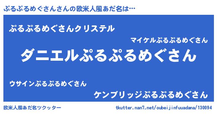 | 男性向けラノベタイトル風あだ名 | 『おまえをオタクにしてやるから、俺をぷるぷるめぐさんにしてくれ! 』 |